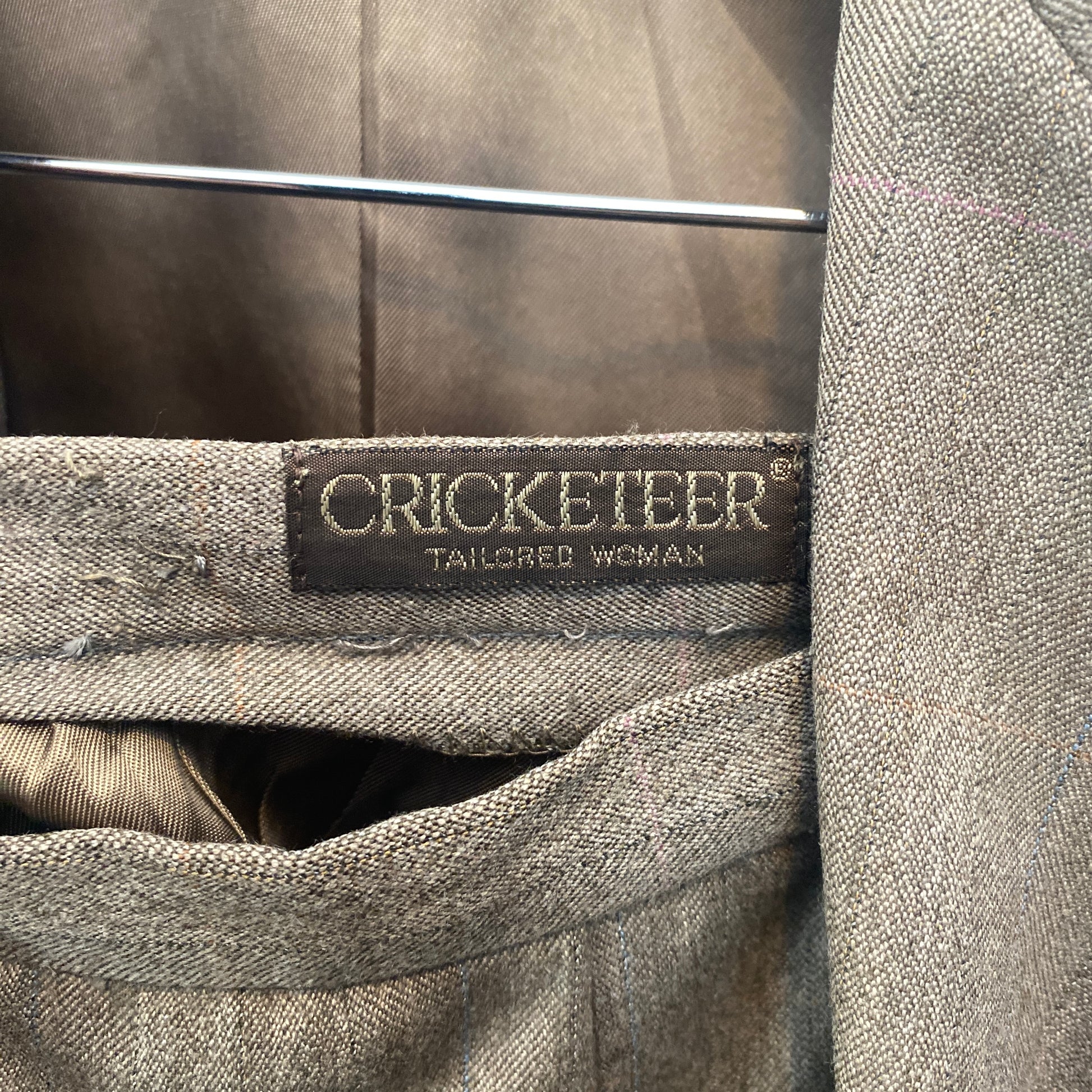 Cricketeer 2 piece brown skirt suit. Midi length skirt, front pockets functional.