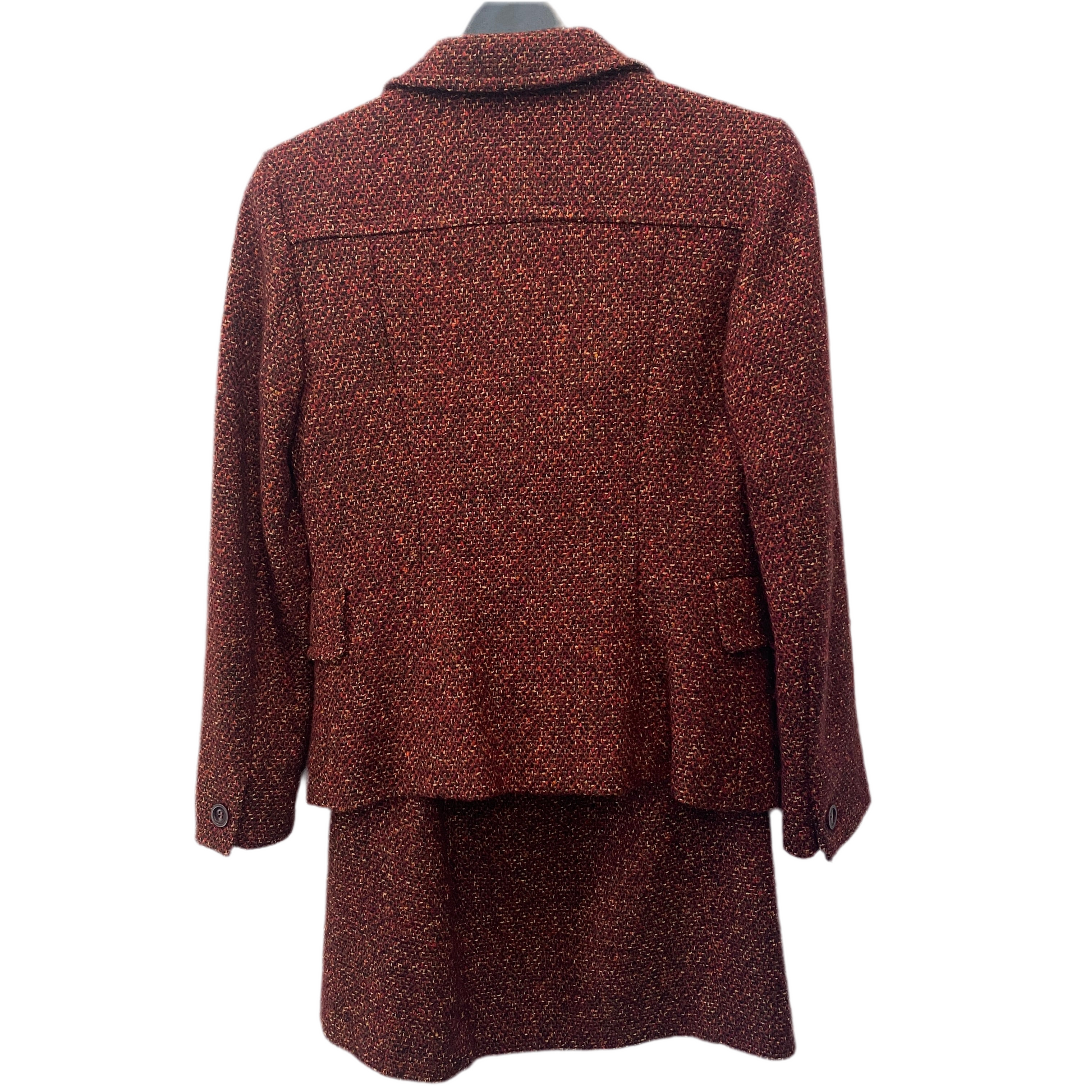 Max Mara red tweed 2 piece set. Midi skirt. Set made in Italy. 77% wool, 23% nylon. Lining 62% acetate 38% viscose.