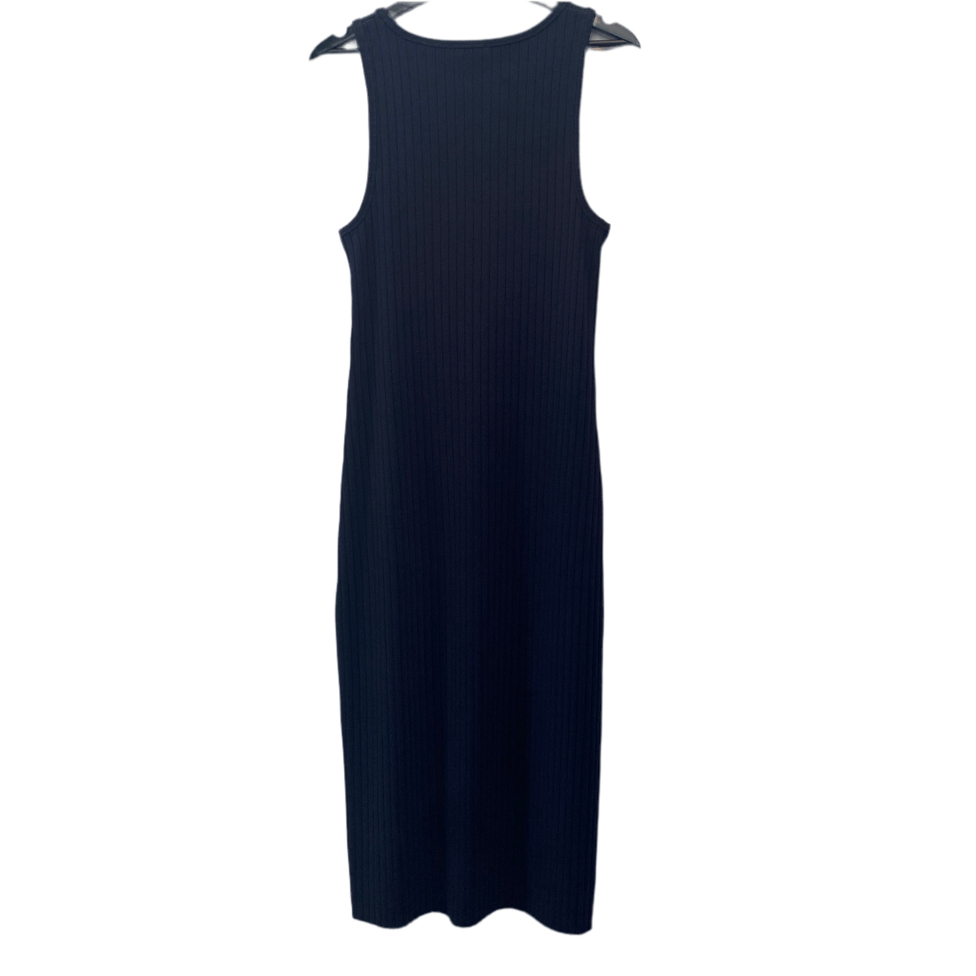 Vince ribbed body con tank maxi dress, navy blue. 46% cotton, 30% viscose, 22% polyester, 2% spandex.